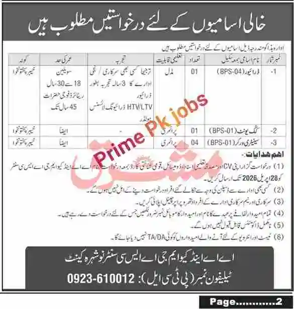 Latest Government jobs Advertisement in Nowshera Cantt 2026