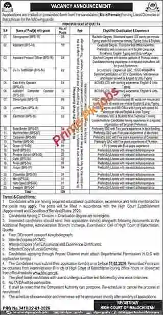 High court of Balochistan jobs 2026 have been recently announced through the newspaper daily express.Applications are invited on the prescribed application form from suitable and talented candidates, both male and female, holding local domicile of the Province of Balochistan, for appointment against the following vacant posts.Interested candidates who possess the required educational qualifications, relevant experience, and necessary skills may submit their applications for these posts. These vacancies will be filled in accordance with the High Court Establishment (Appointment and Conditions of Service) Rules, 2020.