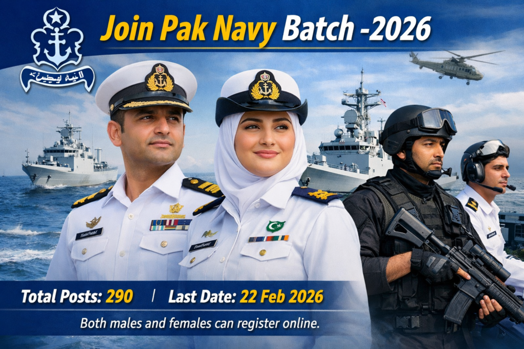 Pakistan Navy has offered excellent opportunities to join as a civilian in Batch 2026.The Pakistan Navy has invited online applications from suitable and talented male and female candidates holding Pakistani citizenship. Currently, the Pakistan Navy requires the services of PNCA Industrial/Technical and PNCA Non-Industrial staff. Hardworking and professional individuals who meet the eligibility criteria are encouraged to apply online.