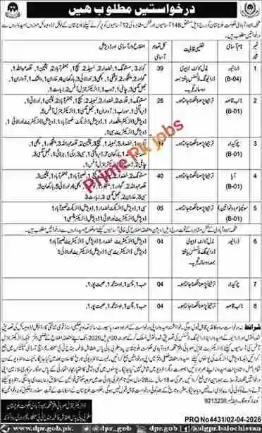 These employment opportunities are being offered on an equal opportunity basis. Women, minority communities, and persons with disabilities are also encouraged to apply. Their quota will be implemented in accordance with the rules and policies of the Government of Balochistan.