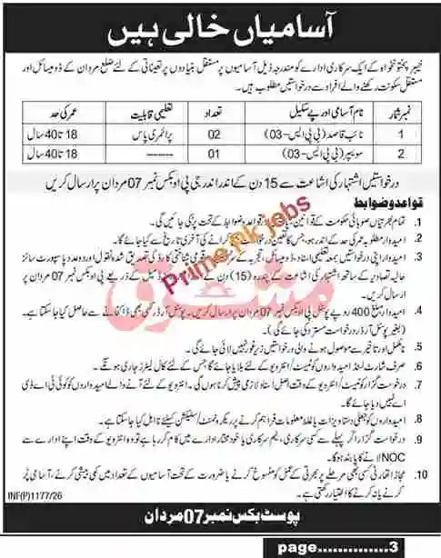 Post Box No.07 Mardan jobs 2026 - BPS.03 vacancies