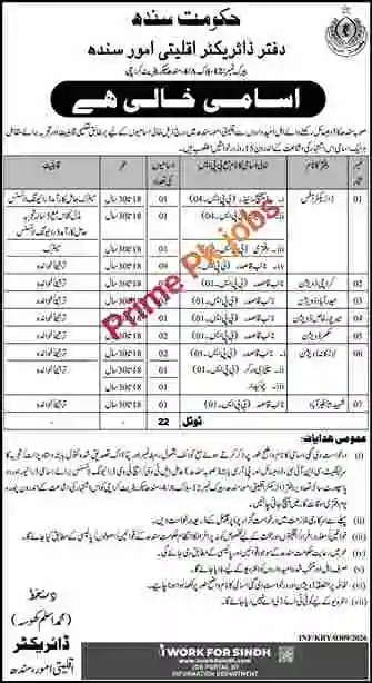 Candidates seeking jobs in the Minority Affairs Department who meet the required criteria for the posts, including educational qualifications and age limits, may obtain these Government jobs in Sindh by submitting their applications according to the prescribed procedure.