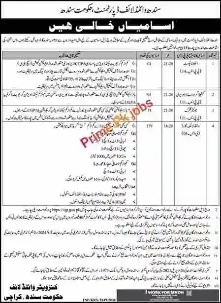 For recruitment to the advertised positions, candidates must possess educational qualifications ranging from Matriculation to Graduation. However, for the position of Wildlife Guard, candidates must also meet the required physical standards in addition to the educational qualifications. The upper age limit for almost all positions has been set between 21 and 28 years.However, general age relaxation will be granted according to the proposed rules and policies of the Government of Sindh. The age of the applicant will be calculated as of the closing date for submission of applications.